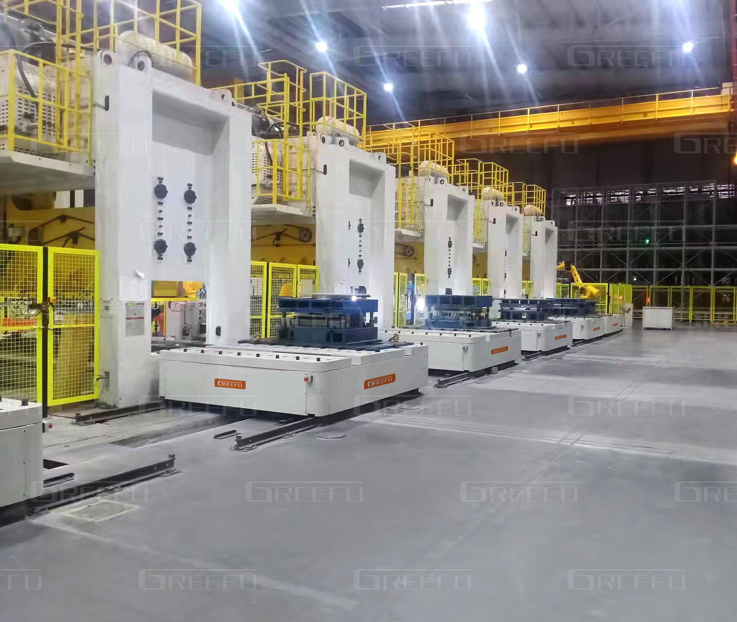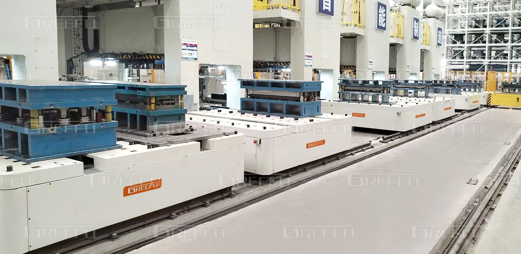 多臺沖床配合多臺換模臺車