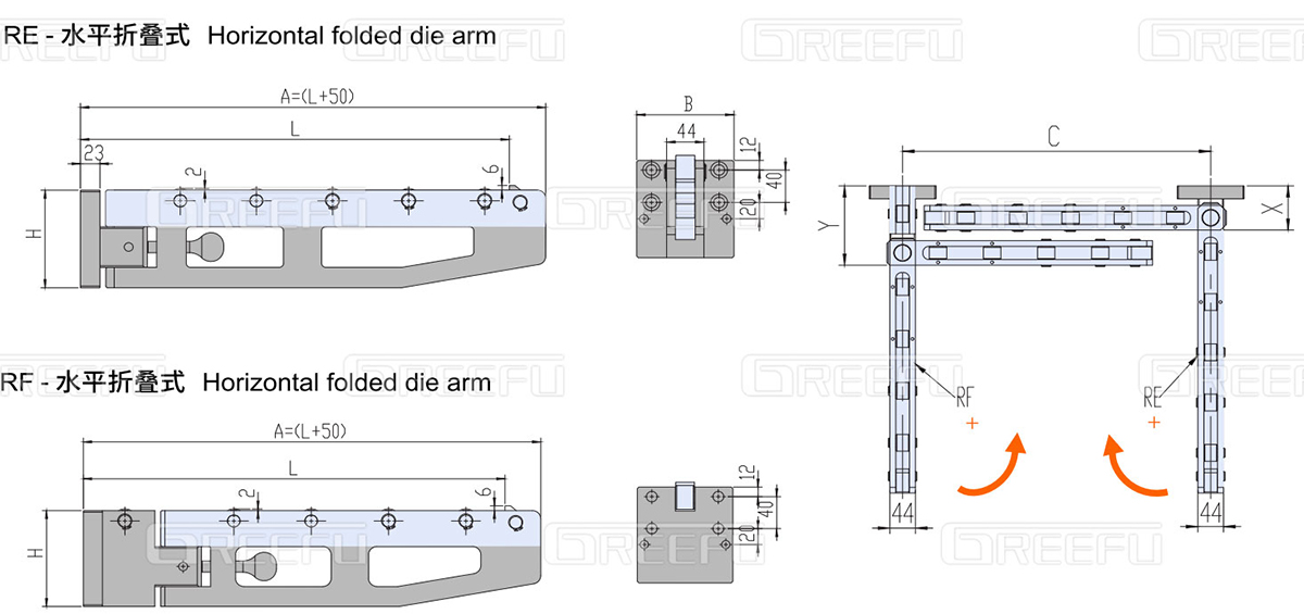 移模臂端部上的止擋塊用于防止模具脫落,為安全裝置。