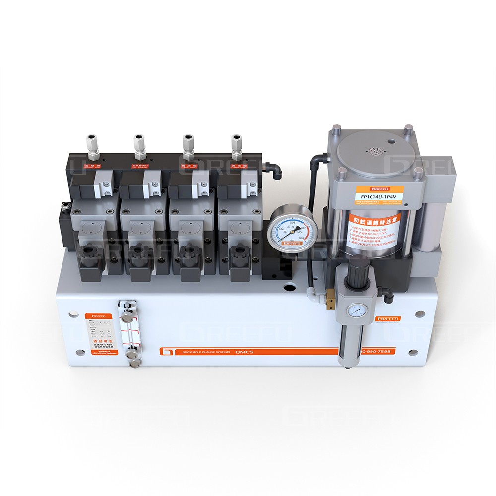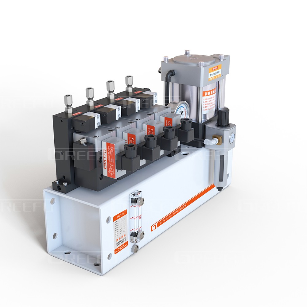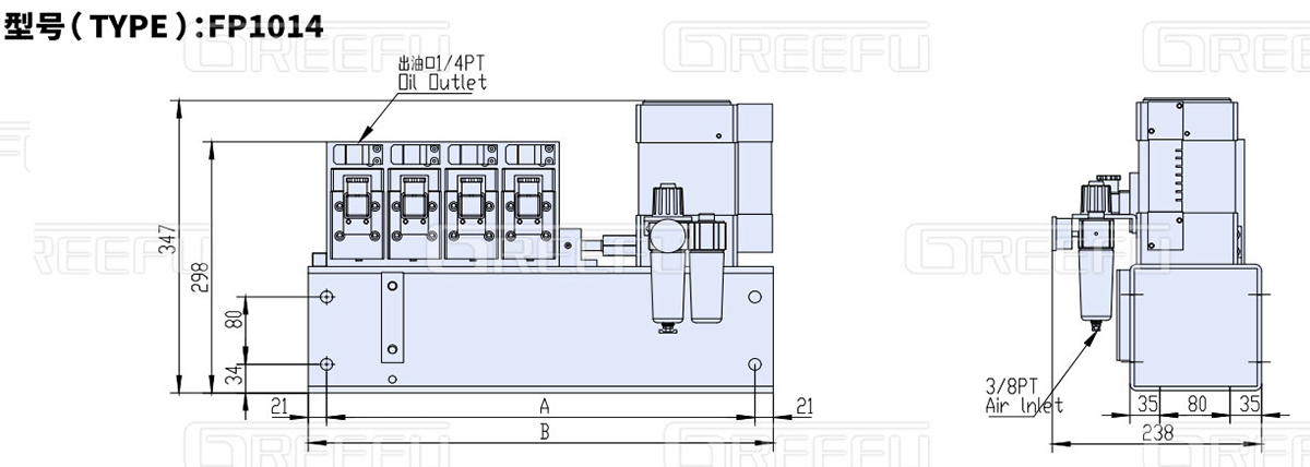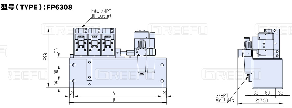 氣動式油壓單元FP1014,利用空氣壓力驅(qū)動泵浦, 由單體泵、壓力開關、電磁閥、氣控閥、 氣源處理器、油箱等組成