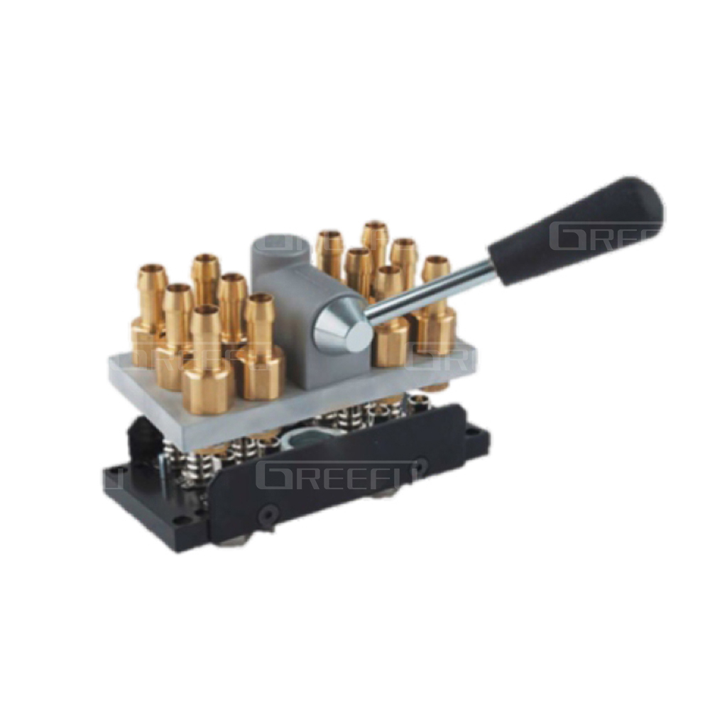 多路快插連接系統(手動):一次操作可同時連接多個配管。大幅度縮短了多個配管的更換時間。一次操作可同時連接多個配管;通過杠桿操作,即可輕松地手動進行安裝與卸取。